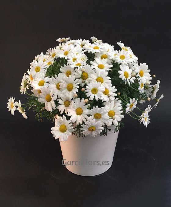 Planta de margarita con maceta de cerámica para regalo.